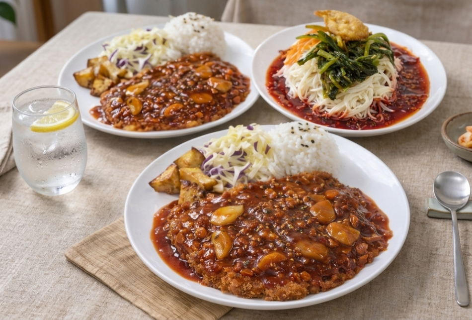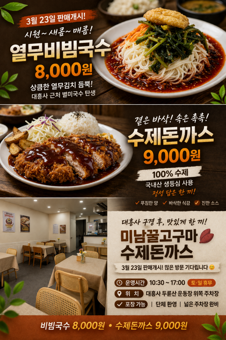 즉석 수제돈까스, 고구마 품은 열무비빔국수 제조